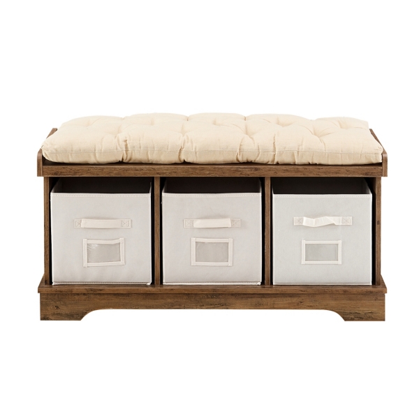 Rustic Oak Wooden Storage Bench With Totes Kirklands